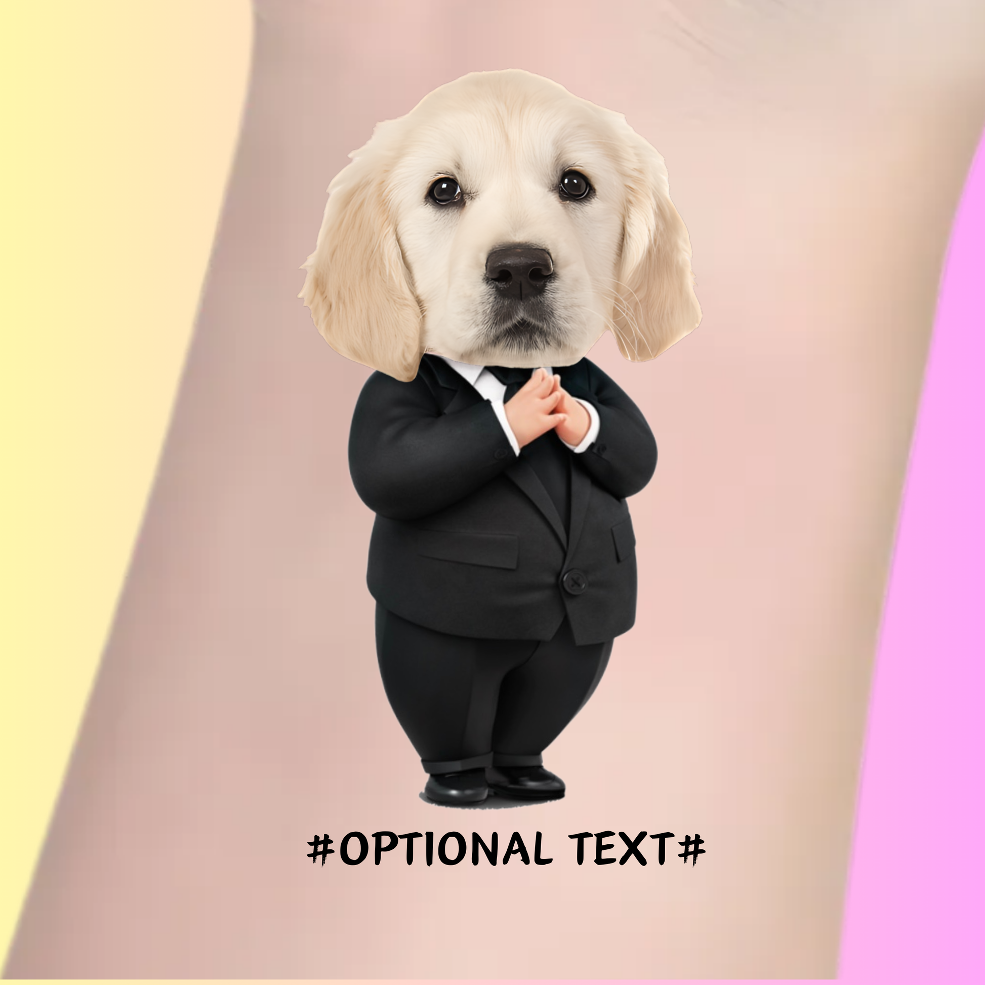 Looking to add a dash of style to your pet’s personality? Our "Dapper Pet" premium custom pet tattoo is the perfect way to celebrate your furry friend’s dapper side! Simply send us a face photo of your pet—whether it’s a dog, cat, or any other animal—and we’ll create a personalized tattoo that features your pet in a suave suit. Ideal for pet lovers, dog- and cat-themed parties, birthdays, or anyone who wants to show off their pet’s personality in a fun and unique way.
