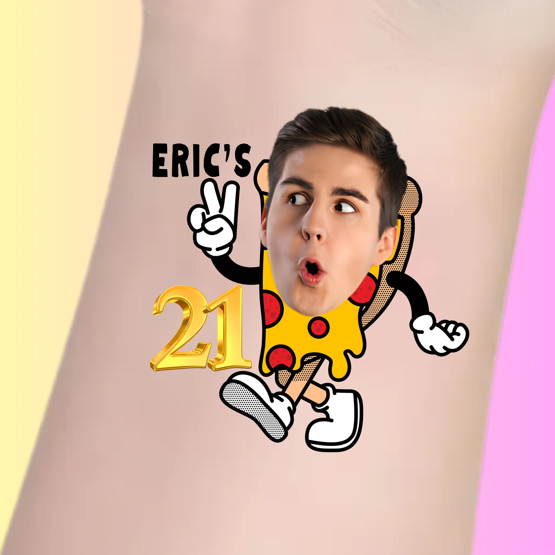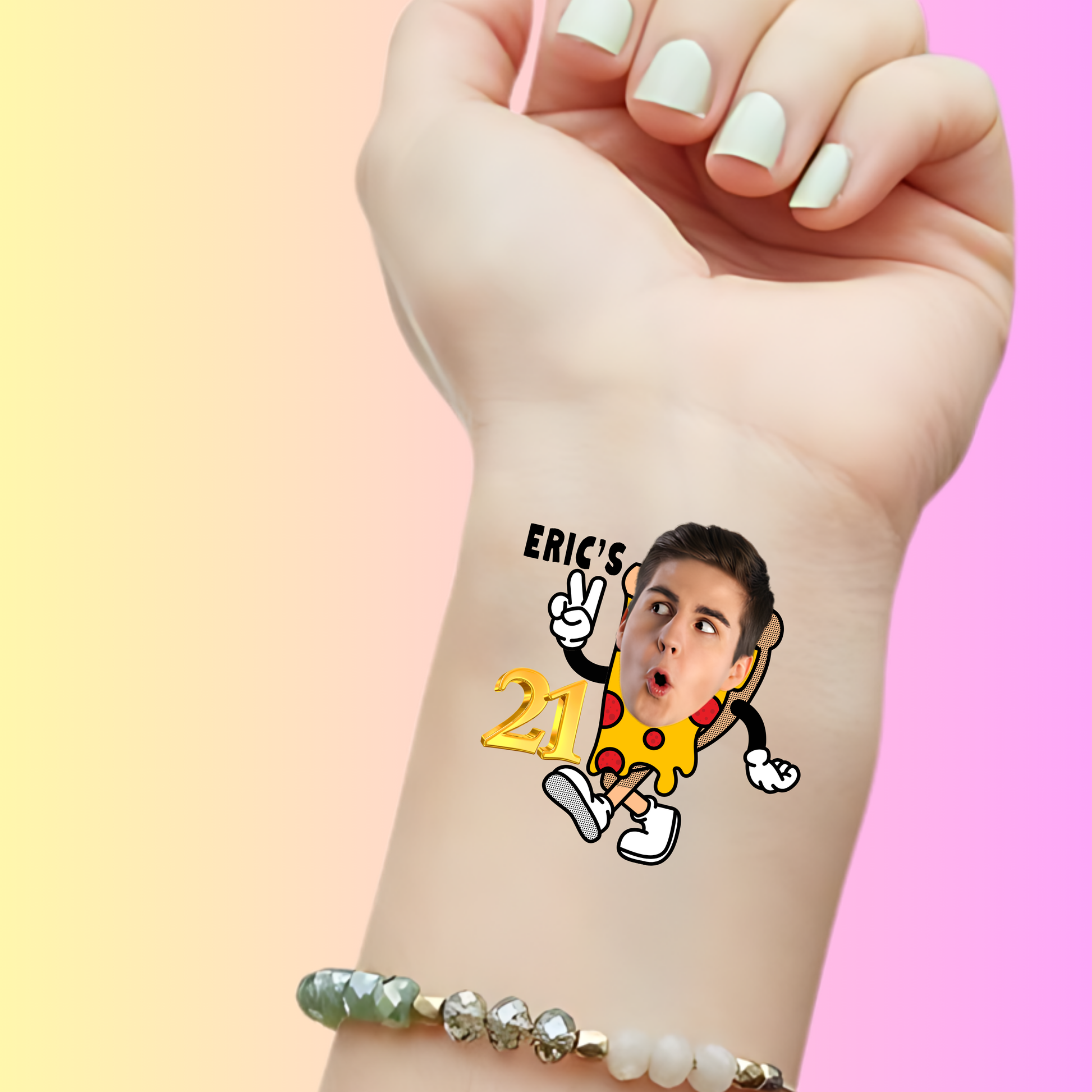 Make their birthday party extra cheesy and unforgettable with this custom pizza slice tattoo โ easy to apply, fun to wear, and guaranteed to bring a smile!
