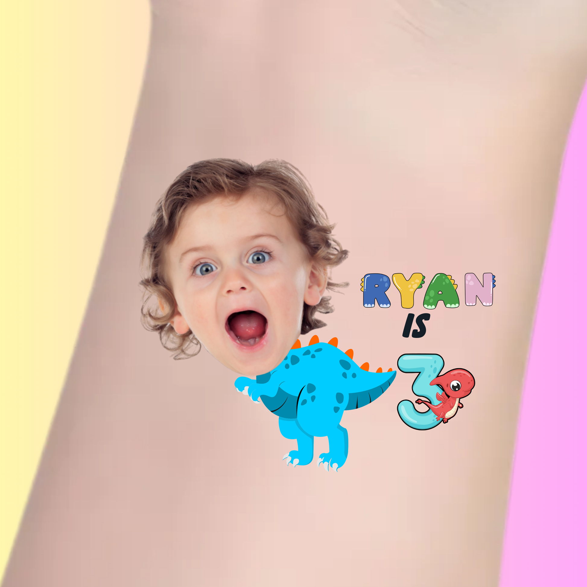Celebrate your child’s special day with our "Roarin' Dino" custom birthday tattoo! Featuring a colorful dinosaur and personalized with the child’s name and age, this adorable tattoo is the perfect accessory for a dinosaur-themed birthday party. Just send us a picture of your little one, and we’ll create a fun, personalized tattoo to make the celebration even more memorable.