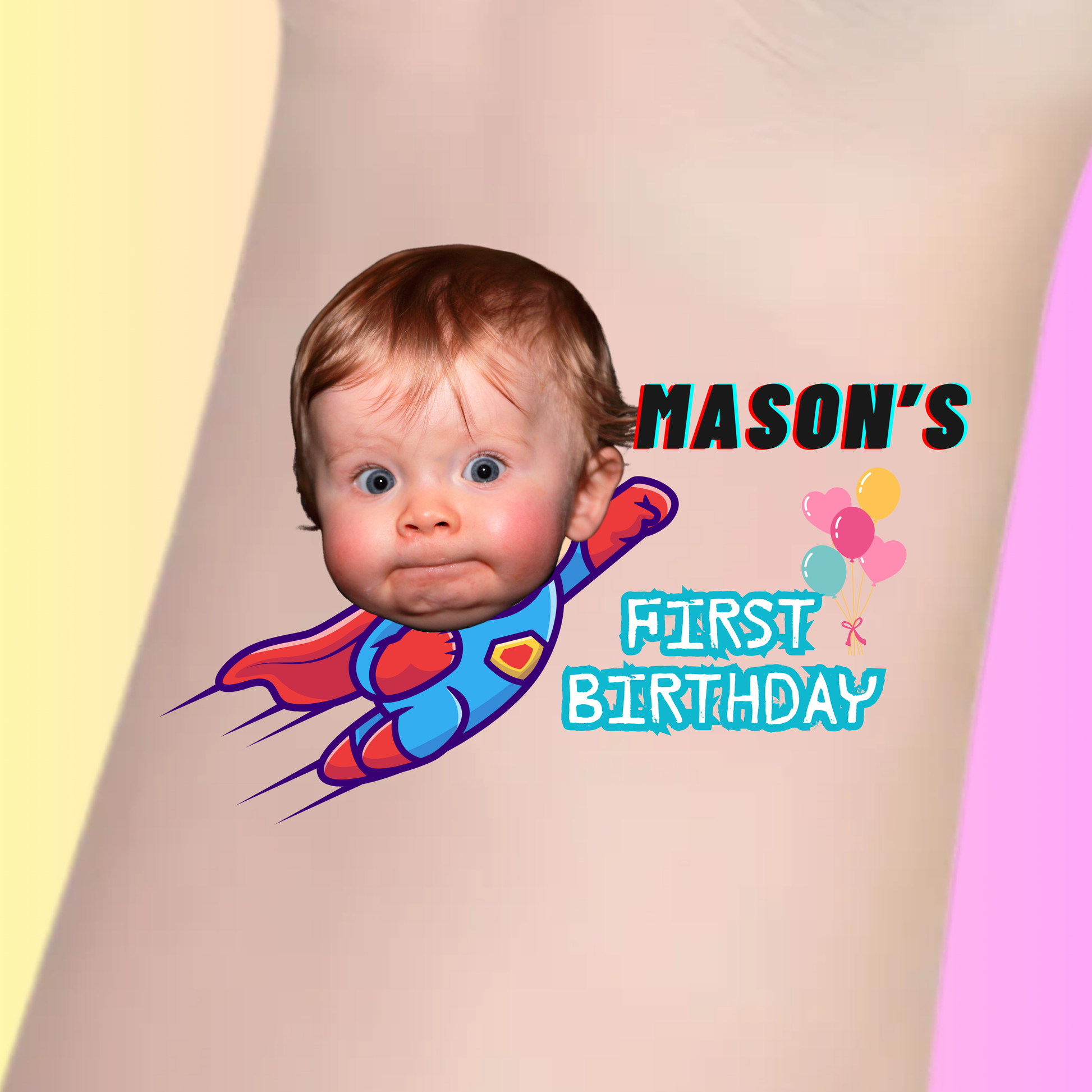 Simpy send us their photo, name, and age, and we'll create a unique tattoo that captures your child's big day! This custom tattoo also makes a fantastic party favor, letting all the little heroes join the action in style.